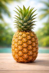 L’ananas est un fruit tropical à la chair jaune dorée, juteuse et légèrement acidulée. Apprécié pour son goût exotique et rafraîchissant.