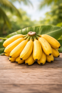 La banane naine, une variété premium reconnue pour sa saveur intensément sucrée et sa chair fondante. Plus courte que la banane classique, elle offre une experience gustative plus concentrée.